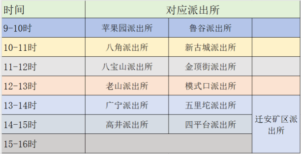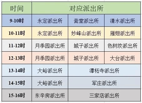 丰台分局各派出所6月25日9时-16时全时段在岗。