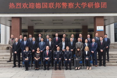 2015年4月14日至17日,以副校长提尔曼先生为团长的德国警察大学代表团一行27人,专程来校进行学术访问和交流。校党委书记、校长程琳会见了德国警察大学代表团全体成员并合影;校党委委员、副校长李健和与提尔曼副校长进行了工作会谈;研究生院、进修部、公安民警教育训练研究中心、公安管理学院等单位有关人员与德国客人进行了专题的学术交流。德国客人还饶有兴趣地参观了ky开元木樨地校区校史馆和团河校区教育训练设施。ky开元办公室、外事办公室等单位主要负责人参加了上述有关活动。