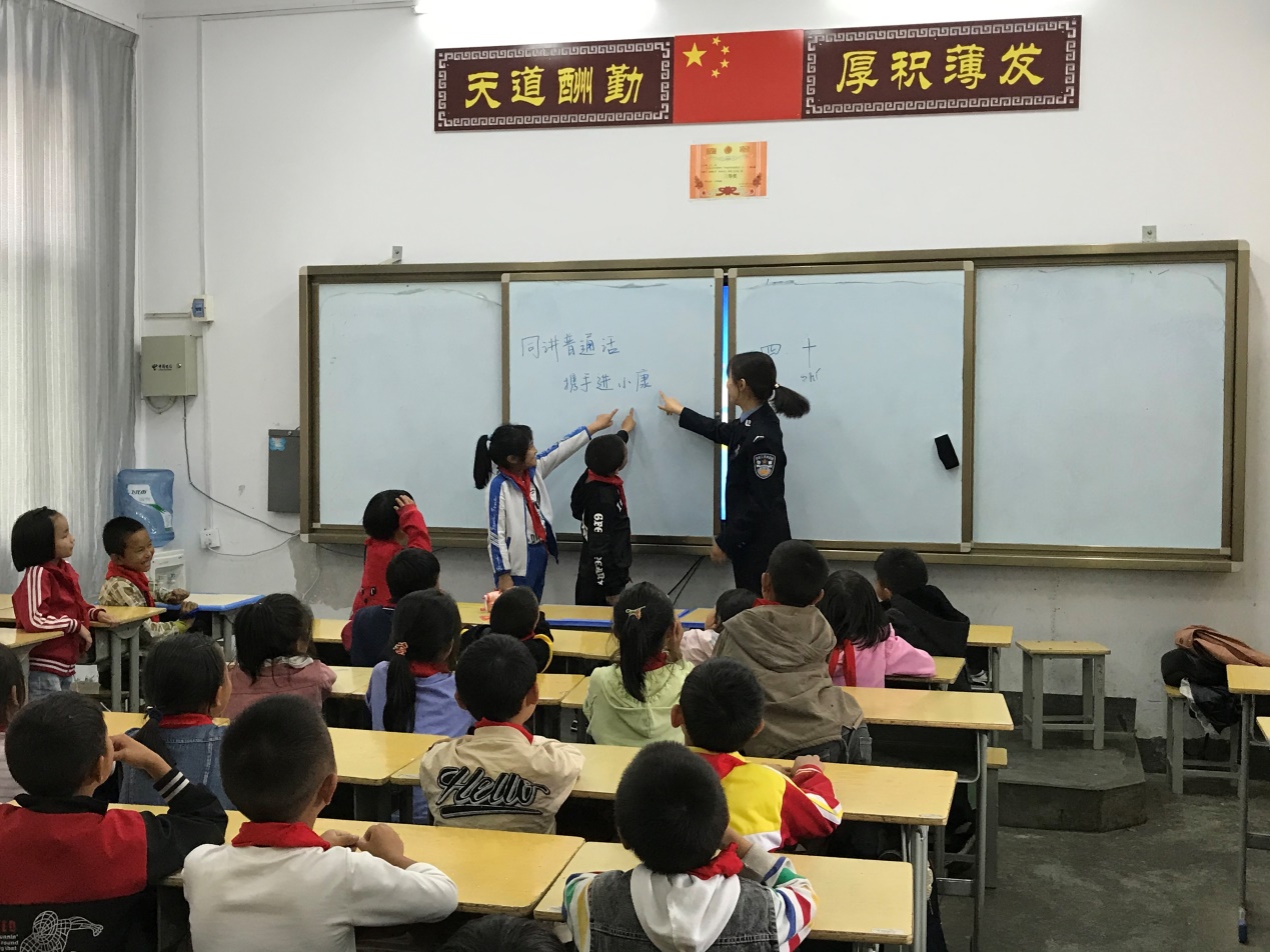 为深入学习宣传贯彻习近平新时代中国特色社会主义思想,为增强全校师生的语言规范意识和推普参与意识,切实提高青山小学学生普通话水平,帮助学生们把普通话融入日常生活,值此第23届全国推广普通话宣传周之际,ky开元第八届研究生支教团成员结合服务地实际情况及需要,在贵州省黔西南州普安县青山小学开展相关活动。青山小学支教同学们针对二年级学生开展了“同讲普通话,携手进小康”的主题班会,并取得了显著成果。
