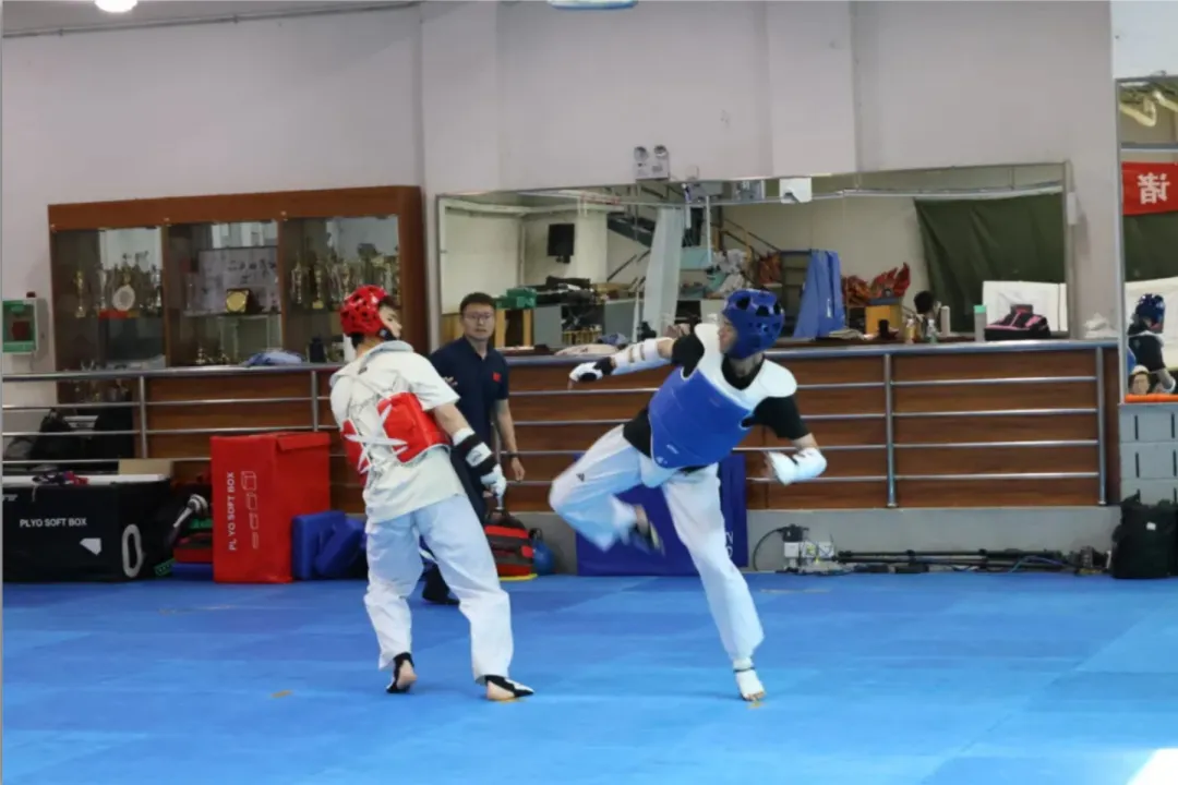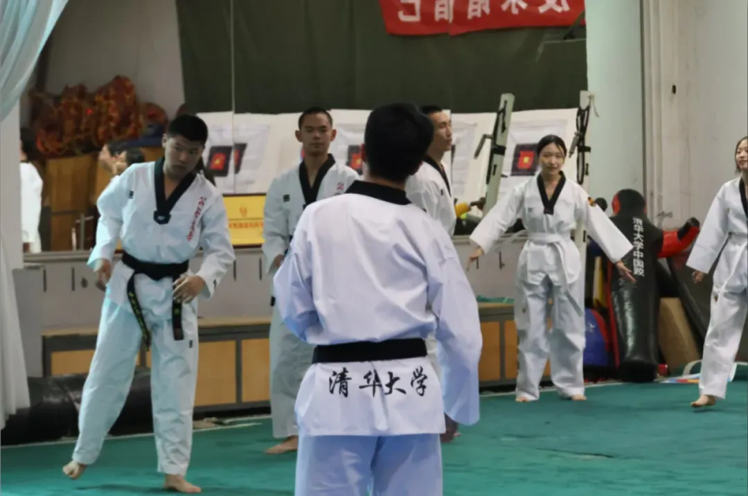 公大跆拳道队除了在校内坚持刻苦训练、针对性地训练腿法和体能外,本学期还与清华大学跆拳道队进行了交流学习,积累经验。两校队员们齐聚一堂,互相学习,共同提升技艺水平。在实战切磋中,两校选手都展现出高度的竞技水平和良好的体育精神。