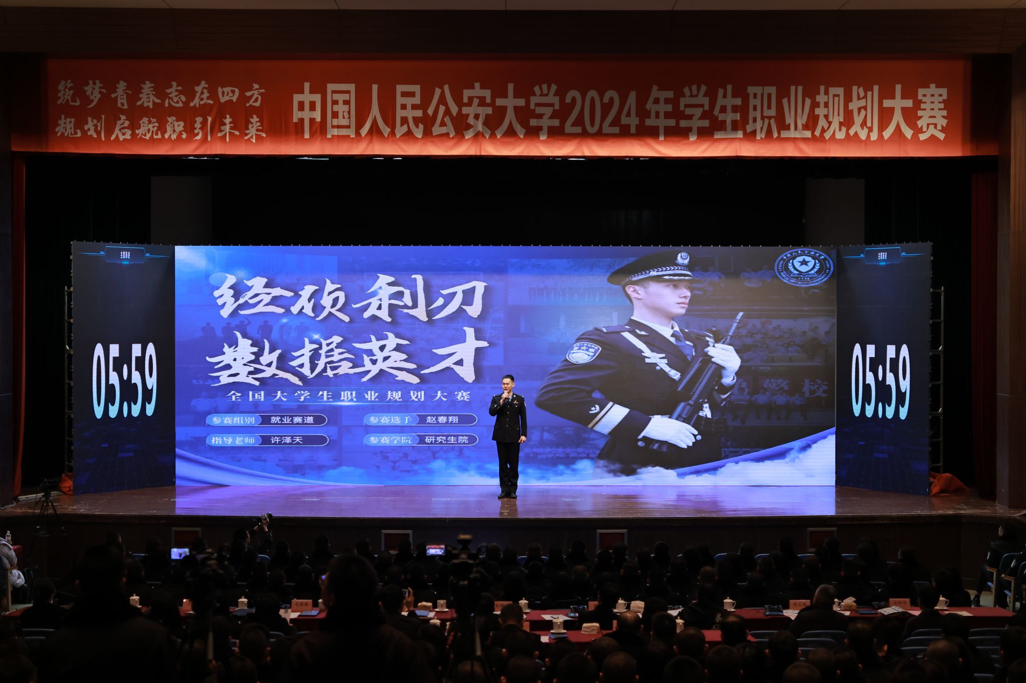 本届大赛以“筑梦青春志在四方,规划启航职引未来”为主题,分设“本科生成长赛道”“本科生就业赛道”和“研究生就业赛道”,共吸引480余名学生报名参赛,9名学生晋级决赛。决赛中,参赛选手围绕学校人才培养目标,立足行业现状和社会发展潜力,深入阐述了对目标职业的认知,并结合自身优势与不足,制定了切实可行的职业规划,表达了学习践行习近平总书记给学校在读英烈子女重要回信精神、矢志不渝做党和人民忠诚卫士的坚定决心。经过激烈角逐,研究生院何昭毅、国家安全学院王彦喆和法学院王瀚琳等3名同学获得一等奖;研究生院赵春翔、窦文涛,涉外警务学院刘婧靓,治安学院林安祺,犯罪学学院任然、国家安全学院张尧君等6名同学获得二等奖;卢怡等9名同学获得三等奖;孙卓等17名同学获得优秀奖。