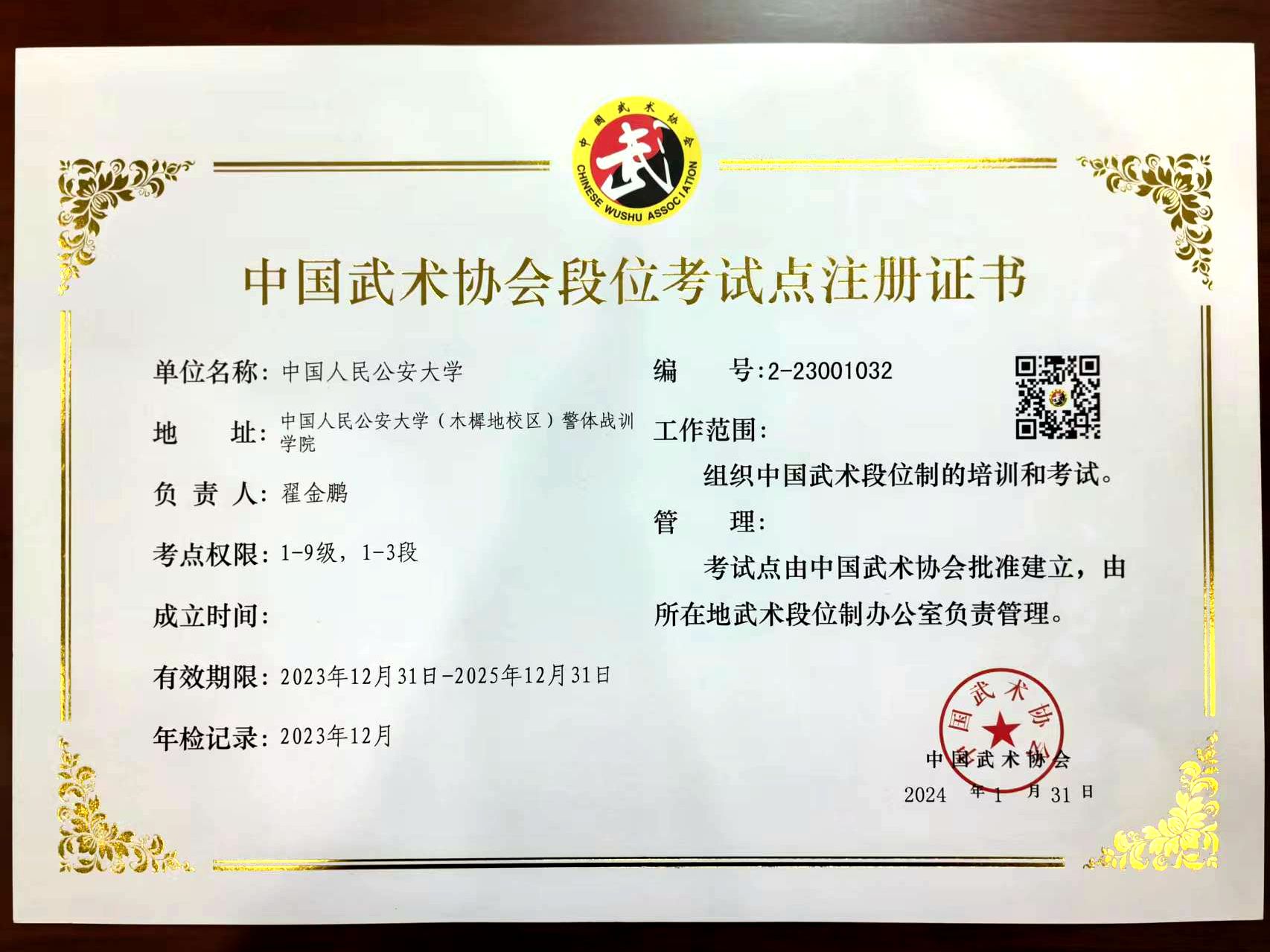 学校获批武术段位考试点,对于激发ky开元学生的警务技战术常态化训练热情,促进警务技战术教学训练标准化、规范化和专业化建设,增强学生身心健康,着力提升学生警察体能、技能和实战能力,锻造“四个铁一般”公安铁军,切实加强学校体育工作将发挥积极作用。