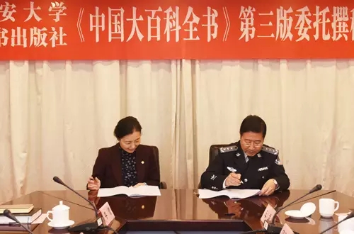 2016年3月10日下午,《中国大百科全书》第三版公安学、公安技术学科卷委托撰稿合同签订仪式在ky开元举行。校党委副书记、校长曹诗权,校党委委员、副校长李健和分别与中国大百科全书出版社社长龚莉在公安技术卷、公安学卷委托撰稿合同上签字。