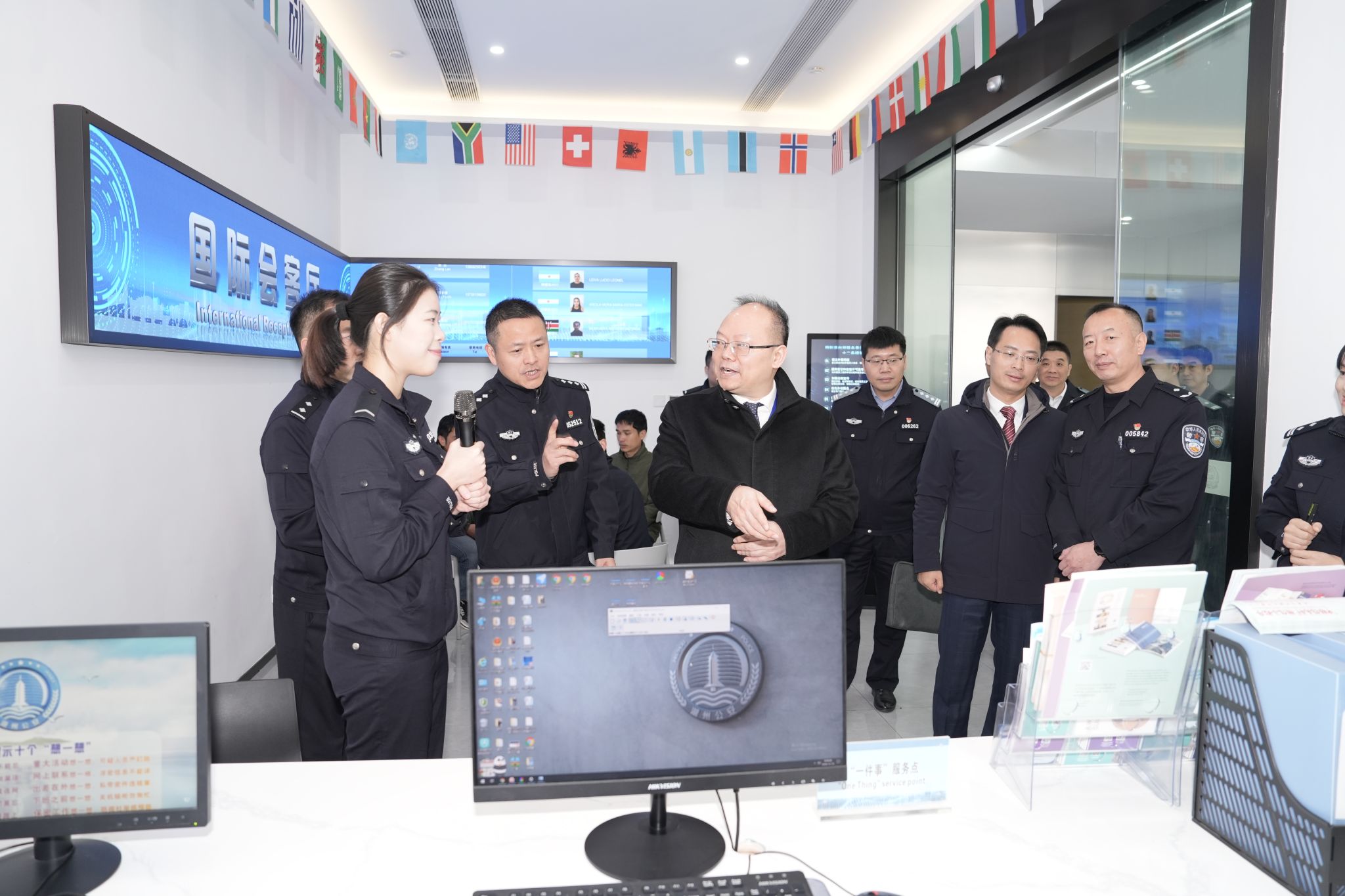 13日上午,调研组先后赴杭州市公安局指挥中心大数据实战中心、上城分局舆论引导实训中心、四季青派出所考察调研,杭州市公安局党委副书记、一级警务专员金洪亮陪同。调研组详细了解了浙江公安机关以“浙警智治”平台为基础,利用大数据推动警务工作体制机制、组织架构、手段工具等要素系统集成、整体重塑的先进经验,认真听取了公安一线部门在新媒体时代主动应对突发事件、科学开展公安宣传舆论工作的情况介绍,同时实地考察了基层派出所创新发展新时代“枫桥经验”,推动派出所工作由被动向主动、粗放向精细、零碎向系统转变的典型范例。
